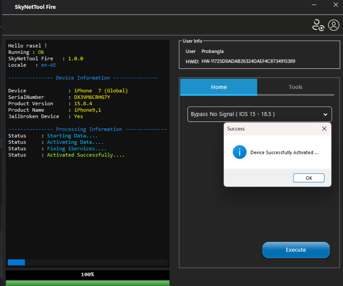 iPhone XR iOS 18.7.1 SkyNet A12+ Activator 100% Work ✅ ( Windows Tool )
