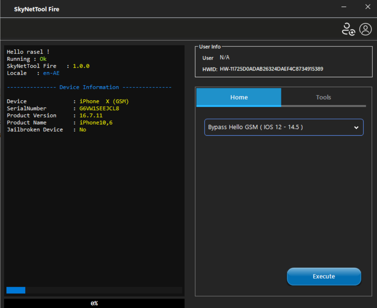 If you need to bypass your iPhone XR, please use the download tool first SkynetA12 Bypasser zip file then Close 3UTOOLS After connecting correctly, open SKYNETA12+ ACTIVATOR then order serial number Now only supports iOS 18.7.1 & iOS 26.0.1 Support only